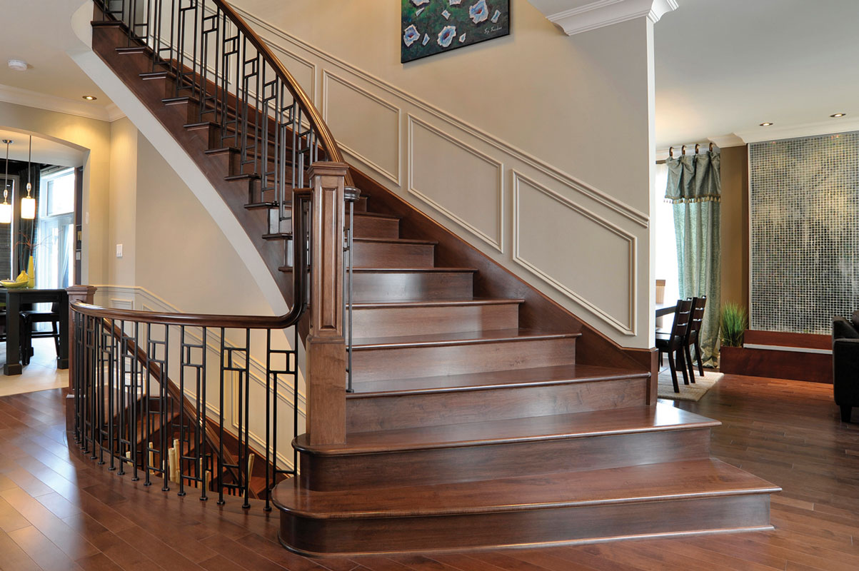 Planchers VIP offre une multitude de matériaux d’escaliers résidentiels et commerciaux à Vaudreuil-Dorion. Le bois franc, le fer forgé, l’acier inoxydable, le fer, l’aluminium et le verre vous permettront de créer le style d’escalier qui répondra à vos goûts. Nos designers pourront vous aider à créer cet escalier sur-mesure qui rehaussera à merveille votre décor! Vous pourrez choisir tous les éléments qui constitueront votre escalier (barreaux, main courante, marches, etc.), pour en faire une véritable œuvre d’art que vous admirerez tous les jours.